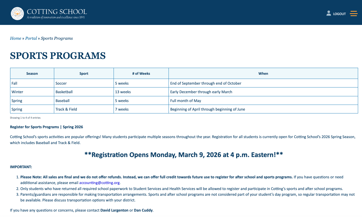 Preview: Spring 2026 After School & Sports Programs